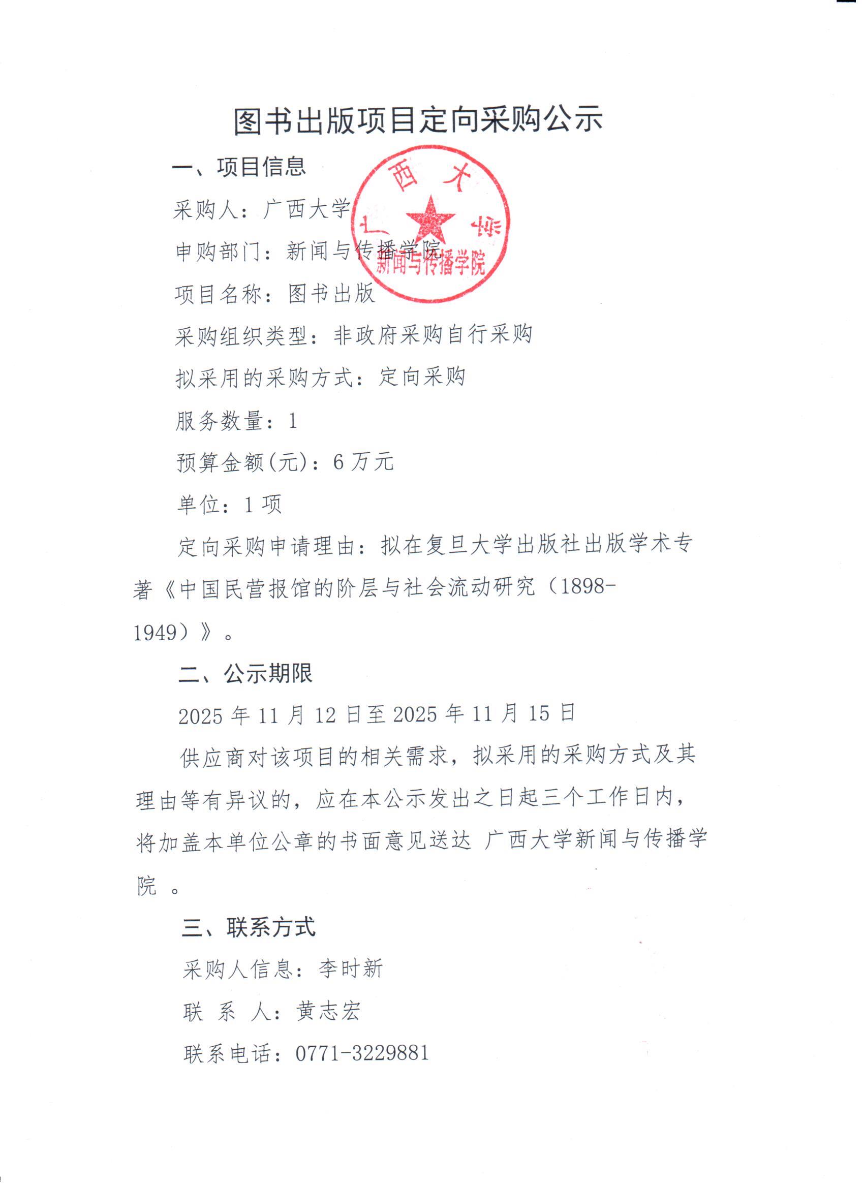 太阳集团tyc4633李时新老师图书出版项目定向采购公示