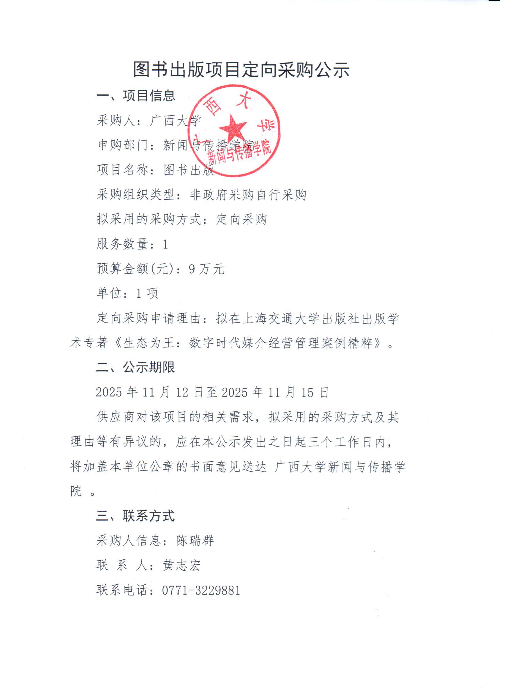 太阳集团tyc4633陈瑞群老师图书出版项目定向采购公示
