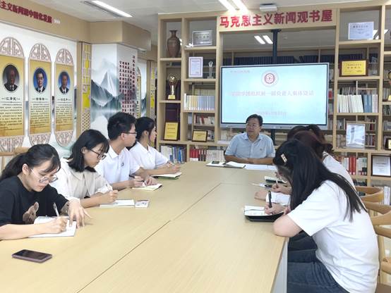 10月25日,“和书记聊思想”在太阳集团tyc4633马克思主义新闻观书屋进行,公司党委书记唐兴与公司学团组织新一届负责人集体谈话。新当选的公司团委、员工会、研究生会的主要负责人参加谈话,公司团委书记刘梦娟,辅导员黎明、辅导员王志标老师出席谈话活动。