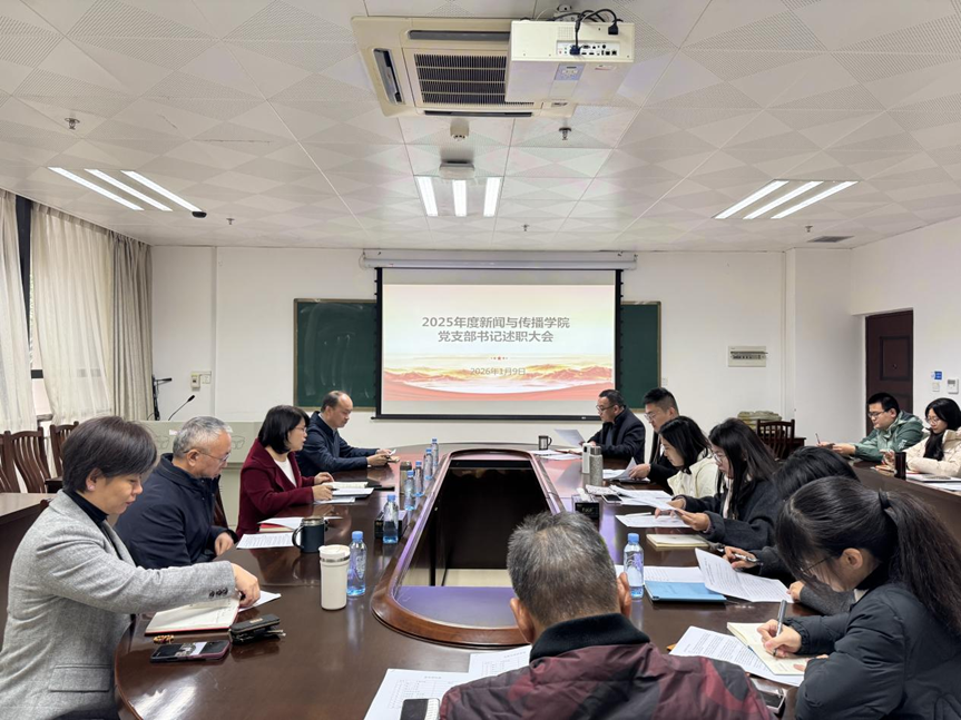 会上,教工第一党支部、教工第二党支部、教工第三党支部,以及学硕班党支部、专硕第一党支部、专硕第二党支部,新闻专业一班员工党支部、新闻专业二班员工党支部、广告专业员工党支部、播音与主持专业员工党支部等10位支部书记依次进行现场述职。大家重点围绕政治建设与思想建设、履行抓党建第一责任人职责、落实“五基三化”系列行动、发挥党支部和党员示范引领作用、推动党建与业务工作深度融合等五个方面,汇报了2025年度的履职情况及实际成效。各支部既总结了特色做法与阶段性成果,也实事求是剖析了当前存在的问题,并提出下一步党建与学科专业协同发展的改进思路和具体措施。