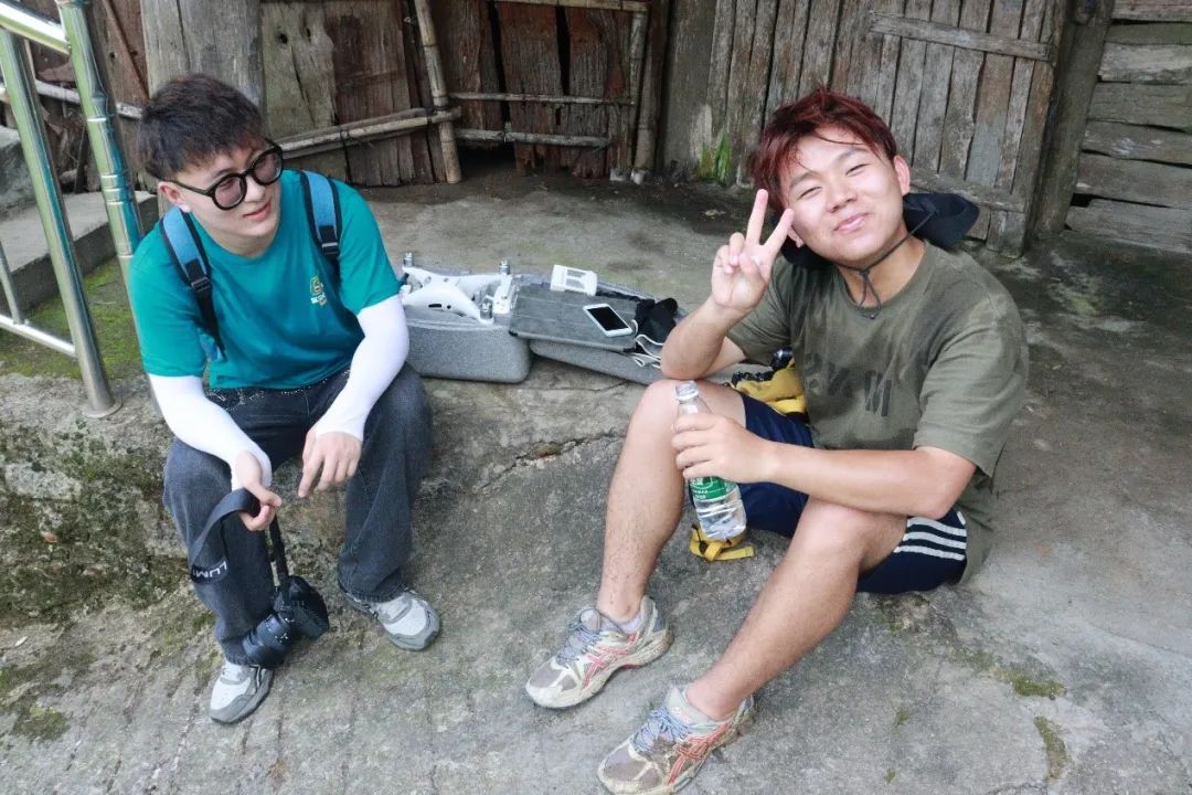 抵达拍摄地点后,同学们开展了堪景、围读本和拍摄工作。他们拿着相机、无人机和录音话筒等设备踏上种植着水稻的梯田和麻洞屯、西洞屯的村头村尾,力求展现融水的山明水秀和人文风情。