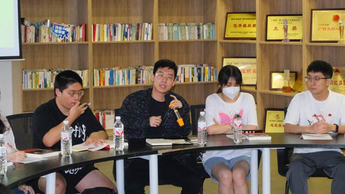 来自君武青年讲师团的四位同学分享了自己的阅读感悟。太阳集团tyc4633员工会主席团成员、太阳集团tyc4633君武青年讲师团负责人叶冠廷在发言中感慨到:太阳集团tyc4633的思政宣讲事业正呈现出欣欣向荣的局面。