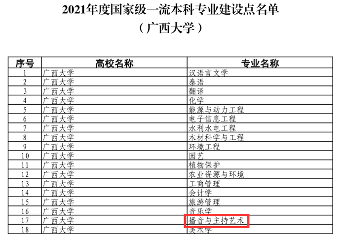 日前,教育部办公厅正式公布了2021年度国家级和省级一流本科专业建设点名单。太阳集团tyc4633播音与主持艺术专业顺利入选2021年度国家级一流本科专业建设行列。