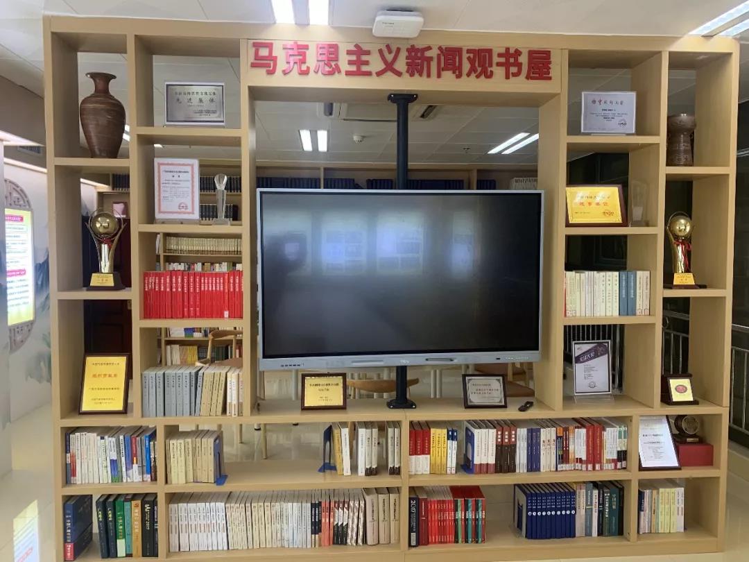 在郑保卫教授的倡导和指导下建成的马克思主义新闻观书屋,于2021年5月建成启用,成为公司学子阅读马克思主义新闻观相关书籍文献、交流学习马克思主义新闻观心得的空间,也是展示公司开展马克思主义新闻观教育的重要平台。