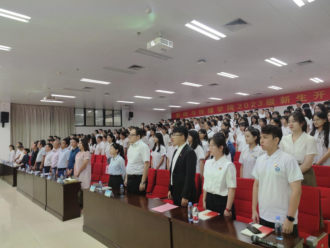 典礼最后,2023级新生集体宣誓并奏唱校歌,在激昂奋进的歌声中,2023级新生将不负韶华,开启新的人生篇章。