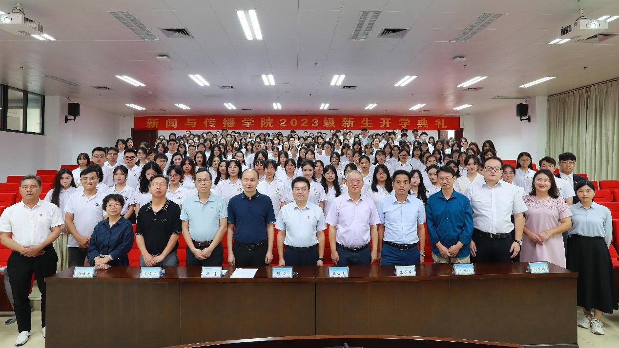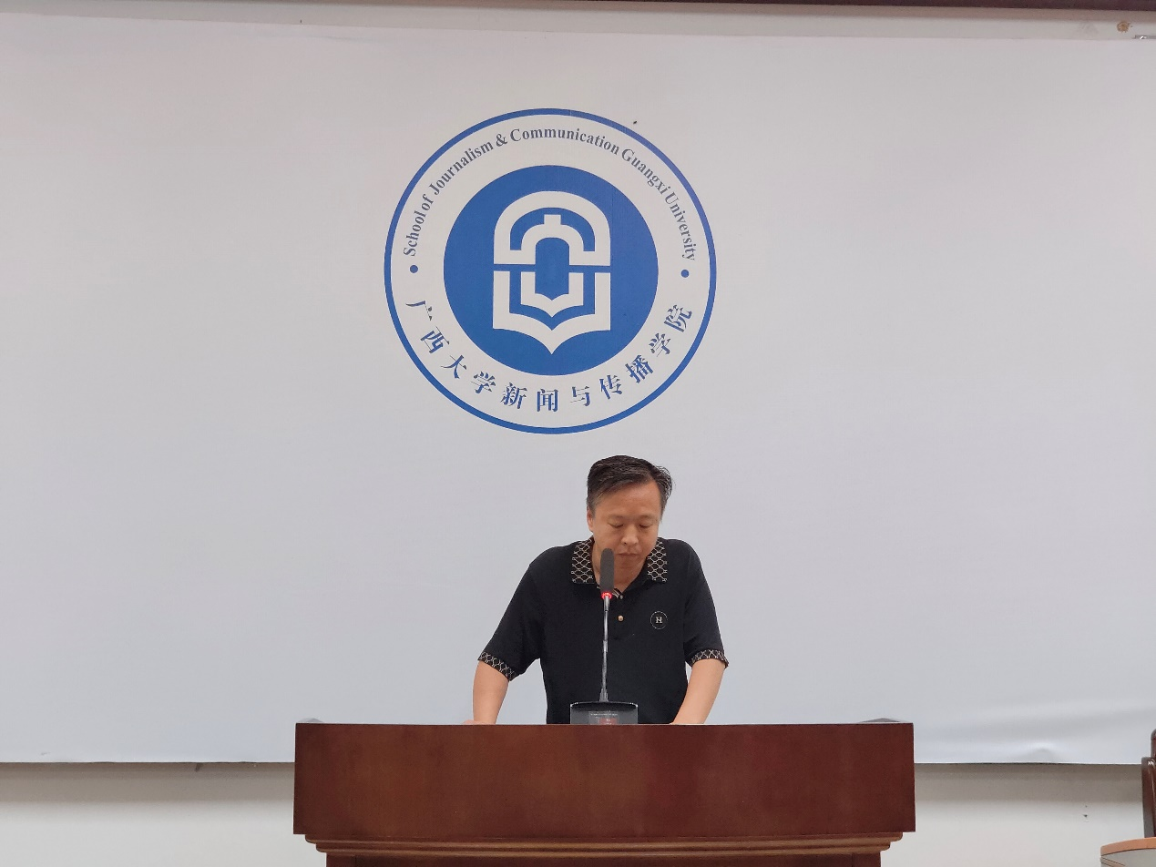 教师代表徐增展致辞,并热烈欢迎2023级新生加入充满挑战和机遇的新闻学大家庭,他表示,同学们将肩负起信息传播、传递真理、守护公正的责任。在未来的学习里,鼓励大家保持对知识的好奇心和对真理的追求心,把握时代脉搏,善于利用新媒体工具,培养传统性的理论素养和现代性的技术能力,同时始终坚持新闻人的道德操守,保持对社会的热爱,相信同学们在未来的求职路上一定能够实现自我价值,为社会做出贡献,对未来充满希望。