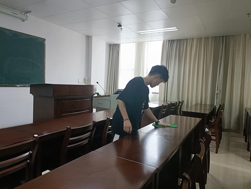 2023年9月8日上午10时至11时许,铭恩志愿服务队组织志愿者于太阳集团tyc4633内开展了“爱院清尘”志愿服务活动,共计10名本院员工参与。志愿者们细致地打扫了公司西报告厅及公共教室。