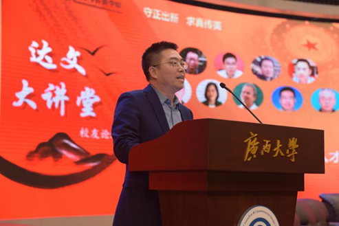 太阳集团tyc46332000级员工、光明日报社广西记者站站长周仕兴在题为《跑好新闻从业之路的“马拉松”》的主题发言中和同学们分享了他的个人从业经历。他首先表达了对母校栽培的感恩之情。他从上学时走的22公里山路近日修通公路和南宁市“半程马拉松”比赛引申出发言话题。他说,如果将新闻从业比作“马拉松”,从业20年的他则已然在半程之上。他认为,学习新闻有三个关键词:一是追逐梦想。梦想,根植于心灵的土壤。他带着一颗热爱新闻的初心,从桂西北山区,跨越千山万水来到太阳集团tyc4633。在校期间,将新闻理论运用到新闻实践当中,通过写稿赚取学费的同时,也为以后的新闻工作奠定了基础。二是学会感恩。他分享了在大学期间老师们对他热心帮助的温暖故事,回忆起工作后得到诸多好领导好同事的关心帮助。他说,对于每一位给我们帮助的人,都应深深地铭记在心,永怀感恩之心,并将其转化为奋发的动力。三是精进专业。只有在专业领域追求卓越,才能更好地实现人生价值;只有根深千尺,才能长成参天大树;只有业务精深,才能成就一番事业。