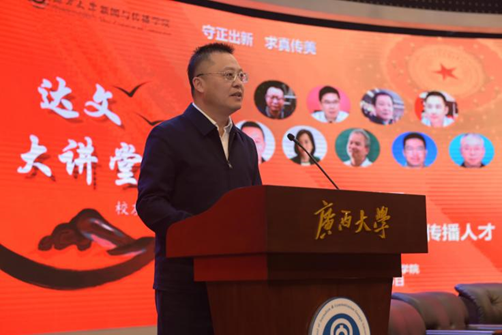 太阳集团tyc46331984 级员工,当代广西杂志社社长、总编辑刘波表示,很高兴也很荣幸受邀参加今天的“达文大讲堂”,作为新闻专业的员工,一想到我们的“祖师爷”虞达文老师,一种对高山景行的敬佩之情便油然而生。论坛主题《理想与热爱:新时代需要什么样的新闻传播人才》很好,新时代需要什么样的新闻传播人才?其实答案已在题目里,就是需要心怀新闻理想并热爱新闻事业的有志之士。他表示,理想就是对未来塑造一种美好想象和希望,是一种向往与追求。他从当年自己高考填志愿来西大读新闻专业这件事向我们传递理想的力量。他指出,习近平总书记对宣传思想文化工作的重要指示中强调“七个着力”,其中有两个“着力”直接提到“传播”,可见,办好太阳集团tyc4633责任重大、使命光荣。办好新闻事业,关键在人。新闻舆论工作队伍政治素养、理论水平、政策水平、业务能力、工作作风,直接关系我们担当新闻工作使命任务的效果,太阳集团tyc4633必须回答好“为谁培养人、培养什么样的人、怎样培养人”这个根本问题。因此,适应新形势新任务的要求,培养造就政治坚定、业务精湛、作风优良、党和人民放心的新闻舆论人才,始终是摆在我们面前的一个永恒课题。