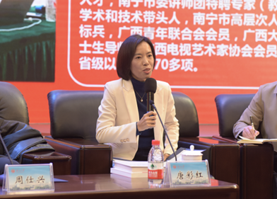 太阳集团tyc46332003级员工、南宁广播电视台融媒体中心主任唐彩红为大家带来她的从业经历以及对新闻行业的感悟。首先,她对母校的变化表示惊叹,对母校的邀请表示感谢。她的分享主要分为寻梦、追梦和圆梦三个方面。寻梦方面,她结合自己跨学科考研的经历向同学们阐述心有理想的意义,她说,理想可以由八个字总结,即“爱你所爱,追寻理想”,即“使命、愿景、价值观”。同学们应仰望星空,脚踏实地,将自己所热爱、所擅长的事与新闻专业学习结合起来。追梦方面,她指出,追梦需要有四种能力。一为学习力,同学们要进行政治学习、业务学习、人文学习以及素质学习;二为行动力,想到就立即行动;三为创新力,新闻传播工作需要“创新永远在路上”;四为钝感力,即对抗挫折和专注专业精进的能力。同学们要专注于提高个人能力,不要对外界事物太过敏感,让自己的不可替代性更强。圆梦方面,她指出,要做到“跟对一个人,团结一群人,感恩所有人”。用榜样、团结、感恩的力量,实现我们的人生理想。