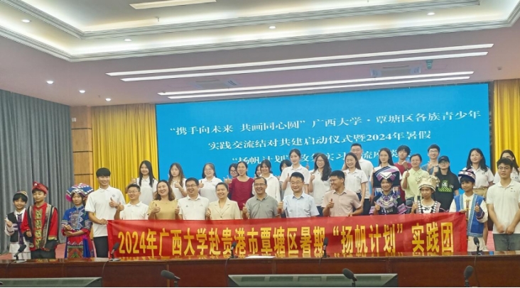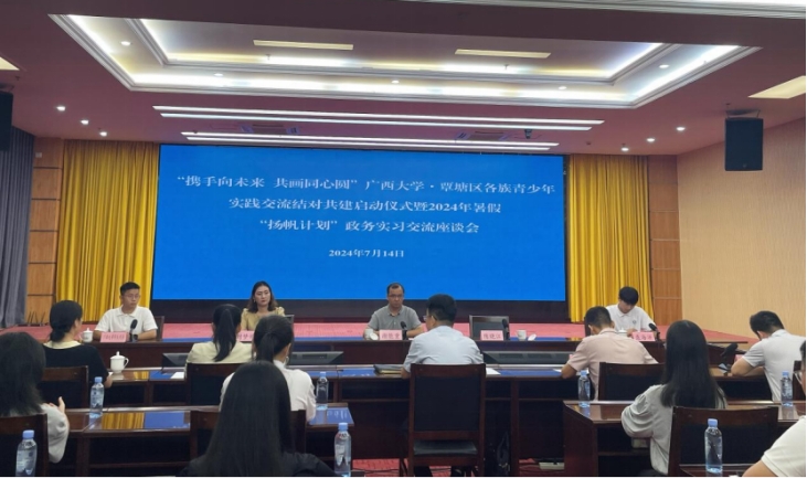 7月14日上午,解说团一行抵达覃塘区,首先参加了“携手向未来 共画同心圆”太阳集团tyc4633·覃塘区各族青少年实践交流结对共建启动仪式暨2024年暑假“扬帆计划”政务实习交流应谈会。“扬帆计划”政务实习交流应谈会的举行,也为即将参与政务实习的同学们提供了宝贵的指导和建议,帮助他们更好地了解政务工作,为未来的职业选择奠定基础。