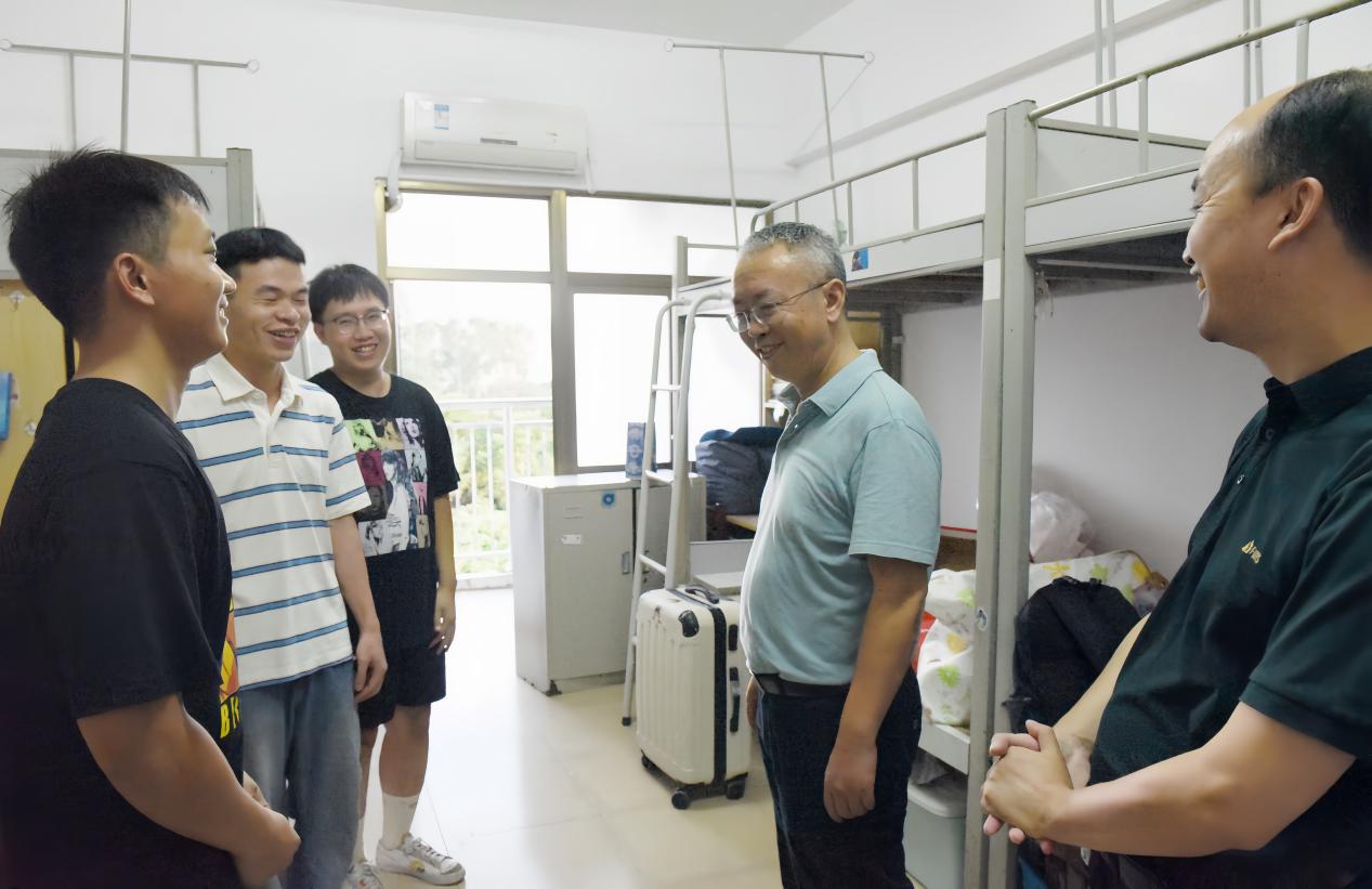 9月1日下午,公司领导班子、全体辅导员及员工干部走访了公司2024级新生宿舍,为新同学带去了温暖的关怀与问候。