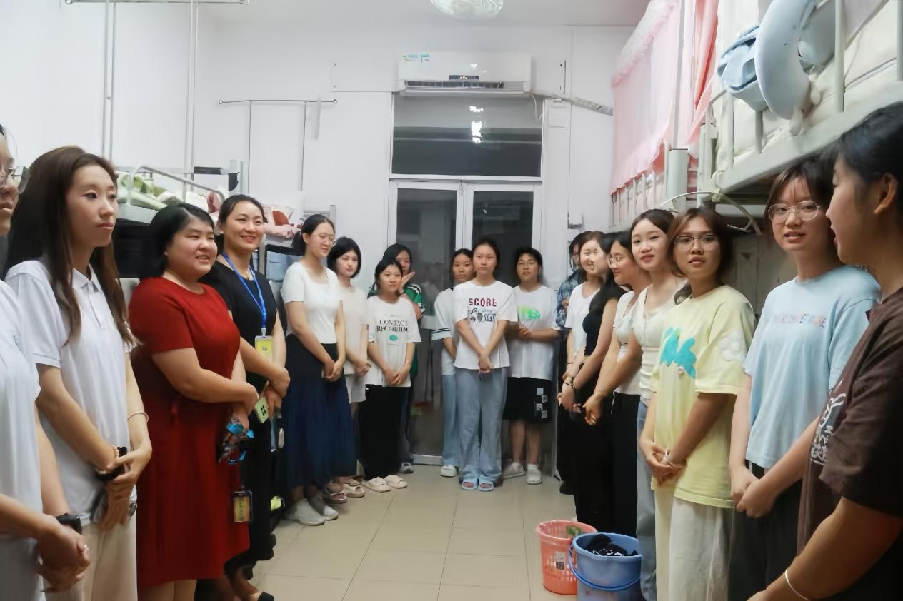 老师们带着关怀与问候,走进了一间间新生宿舍,同新生亲切交流,询问他们对新环境的适应情况。“住得习惯吗?” “生活上有没有什么困难?”一句句贴心的话语,瞬间拉近了与新生们的距离。