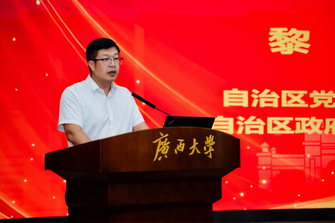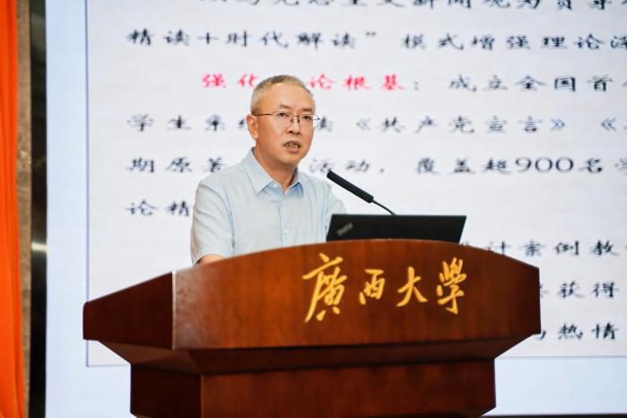 自治区党委宣传部副部长、自治区政府新闻办主任黎攀,中国社会科公司新闻所原所长、研究员尹韵公,太阳集团tyc4633党委常委、副董事长赵双良,自治区教育厅高教处副处长罗恒,以及中国人民大学、复旦大学、暨南大学、厦门大学、西南政法大学等区外高校马克思主义新闻观教育专家、区内联盟高校师生代表欢聚一堂,共守马克思主义新闻观的精神高地,共绘广西新闻教育发展的壮美画卷。