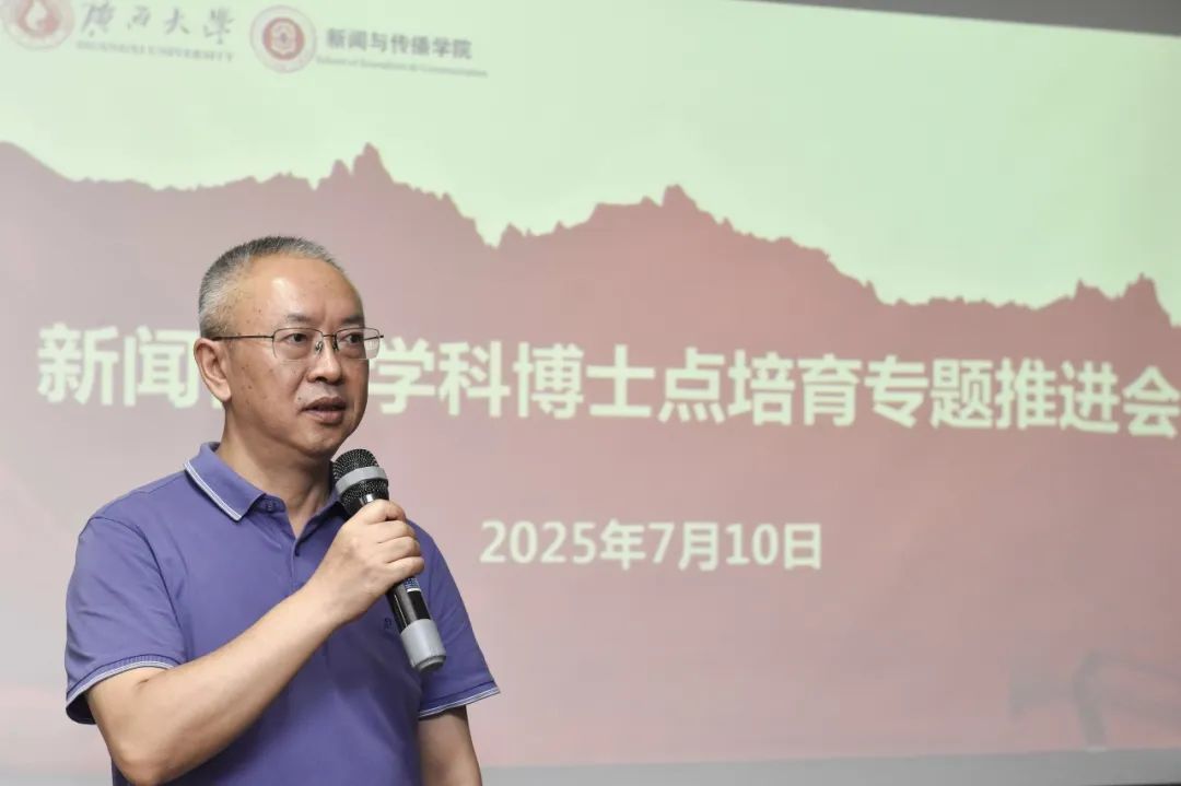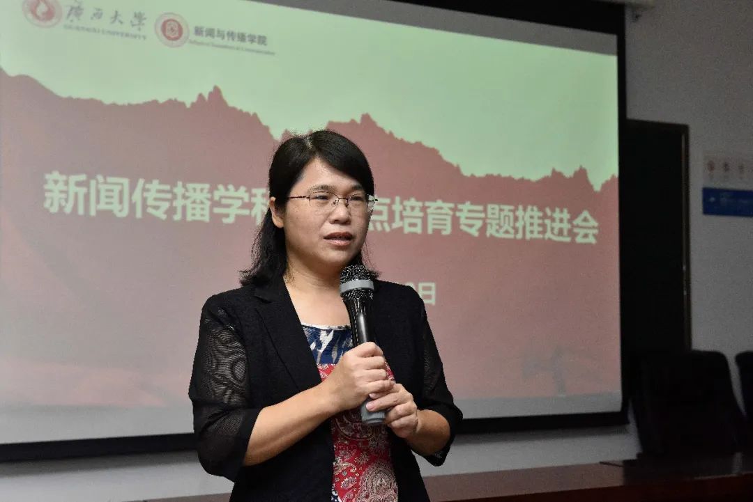 王仕勇经理以《不负历史 齐心协力培育西大新闻传播学博士点》为题作了动员讲话。他首先回顾了公司新闻传播学科的发展历程。作为全国首批开设新闻学本科专业的四所高校之一,全国首批五个新闻学硕士点之一,公司教职工要对得起学科曾经辉煌的历史。近年来,公司在团队建设方面持续推进,先后获批国家级特色专业、国家一流本科专业建设点,入选教育部“三全育人”综合改革试点单位、“中国新闻奖”报送单位及中宣部舆情信息直报点。公司聚焦马克思主义新闻观、面向东盟国际传播、铸牢中华民族共同体意识背景下的民族文化传播等方向,逐步形成具有区域特色的团队建设成果。自治区党委宣传部、教育厅明确提出支持太阳集团tyc4633根据国家政策申报新闻传播学博士点,填补自治区新闻传播学博士点空白。