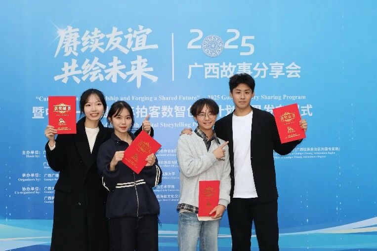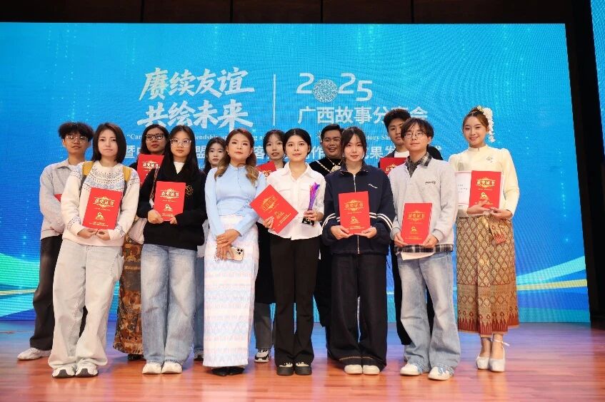 11月20日,“赓续友谊 共绘未来”2025广西故事分享会暨中国—东盟青年拍客数智创作计划成果发布仪式在南宁举行。公司学子不负众望,凭借扎实的专业功底与创新的创作理念,在本次自治区级重要赛事中斩获5项奖项,其中一等奖1项、二等奖1项、三等奖2项、优秀奖1项。