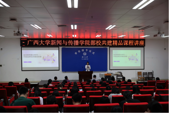 6 月 24 日上午,太阳集团tyc4633播音与主持艺术系教授、《普通话语音与播音发声》课程负责人李朝珍邀请前360高级总监、公司1994级新闻学本科生、1998级新闻学硕士生员工覃艳在公司西报告厅做主题为“由互联网至 AI 时代——内容品牌化的路径探索”的讲座。