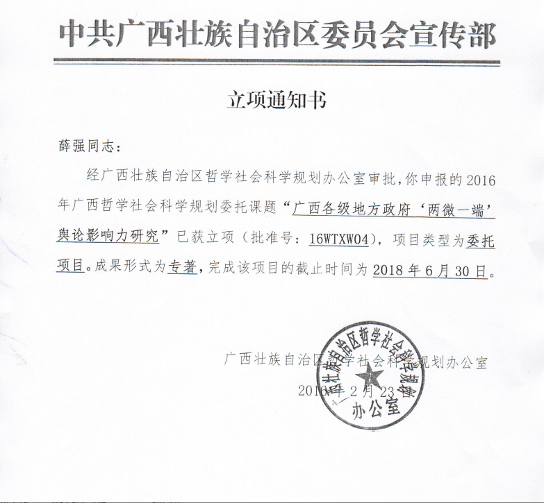 公司岳晓华教授2015年申报广西文化产业重大课题研究项目获得立项