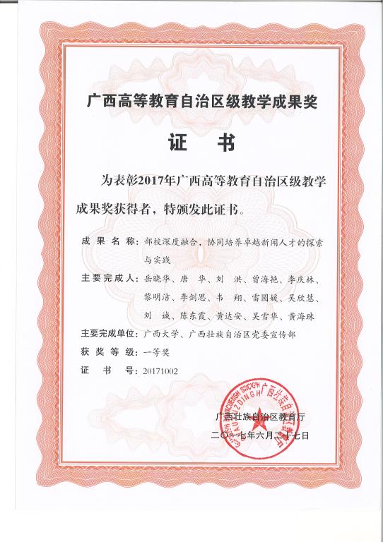 太阳集团tyc46332017年喜获广西壮族自治区教学成果一等奖