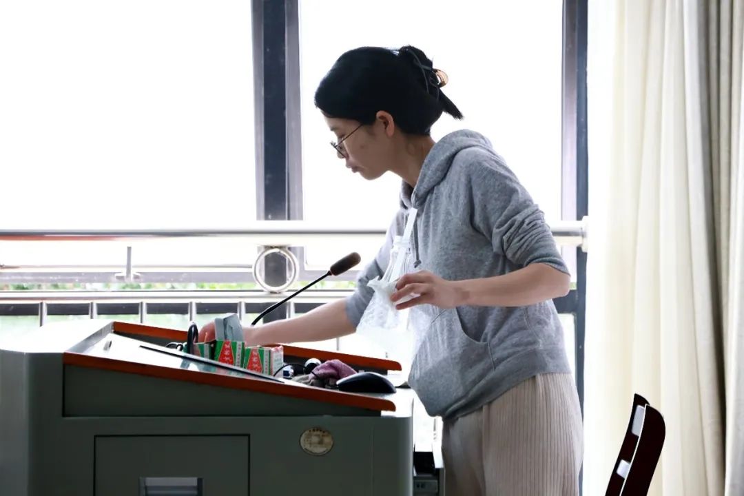 西报告厅清扫现场