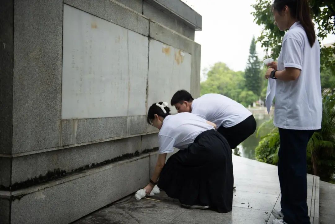 全体成员依次走到革命先烈墓前敬献白花后,向烈士鞠躬致敬,表达对革命先烈深切的缅怀之情与崇高的敬意。随后集体默哀一分钟,共同怀念革命先烈,整个过程庄重严肃。今天的这份纪念不仅是为了追忆,更是为了铭记革命烈士们的无畏精神,并将这份红色基因融入我们的血脉。