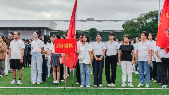 升旗仪式结束,广西日报的记者采访了新闻251班的大一新生王巧玲。她的感受,很直接。“这是我参加过的一场很有分量的升旗仪式。”她说,“现场有许多退休教职工和附近的居民,三代人共同见证,氛围肃穆庄重。看着五星红旗飘扬,自豪感,不自觉地就涌了上来。”简单的话语,道出了所有人的心声。