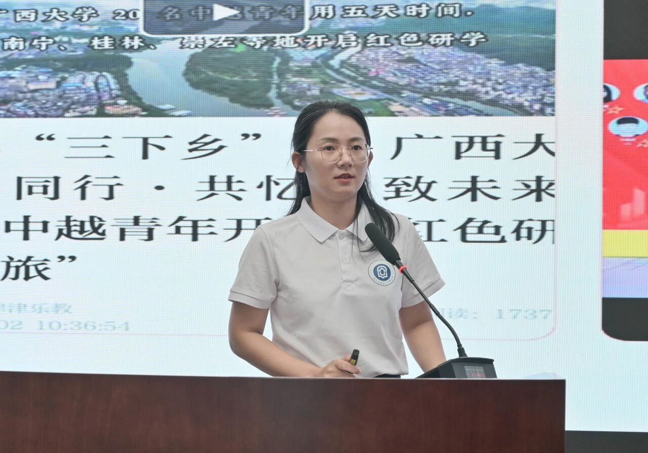 辅导员何湘桂以公司2025年暑期社会实践内容与成果为切入点,主讲入团启发教育,助力新生深入认识共青团使命,引导其积极参与实践、依托平台实现成长。