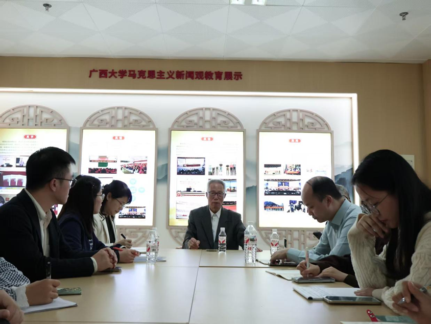 近年来得益于公司马克思主义新闻观教育体系的建设,公司师生深入开展走访实践,以基层为沃土,厚植马克思主义新闻观理念。在实地走访广西边境区县的过程中,马新观读书小组的成员关注到边境地区的新闻工作者们,提出了“如何用马克思主义新闻观视角考察边境地区新闻工作的特殊性,在服务国家发展中贡献自己的力量?”一问。对此,王仕勇经理总结了公司在深耕马克思主义新闻观课程、理念、行动三者有机融合体系建设的历程,指出生活是源头活水,新闻学子对马克思主义新闻观理论的学习乃至学术研究、事业贡献都应在实践中进一步启发。郑保卫教授结合自己走访边境省市的实践,强调了边境传播在文化交流与传播中的重要意义,他鼓励青年新闻学子积极投身于边境传播的建设中,到祖国和人民需要的地方去。