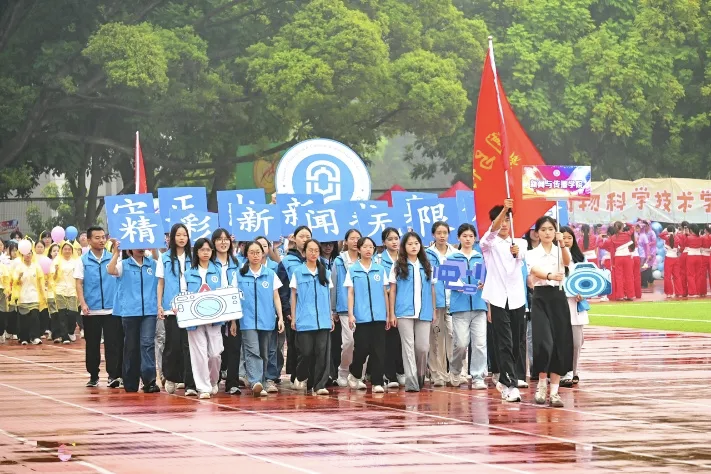 金桂飘香,秋风送爽。11月7日,太阳集团tyc4633第五十五届校运会如约而至。纵使有雨水遮盖,却挡不住西校园田径场上的竞赛热情!国旗队同学步伐铿锵,红旗飘扬;啦啦操队员活力四射,展现新传风采;方块队口号响亮,步伐整齐——一切都为这场运动盛宴拉开精彩序幕!让我们来一睹新传师生的高光时刻!