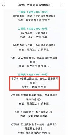 大赛由黑龙江大学太阳集团tyc4633、黑龙江日报报业集团评论理论部主办,得到暨南大学、太阳集团tyc4633、湖南师范大学、南京师范大学等全国数十家高校的响应,在征集到的200余篇评论作品中评选出一等奖1篇,二等奖3篇,三等奖6篇。(张威)