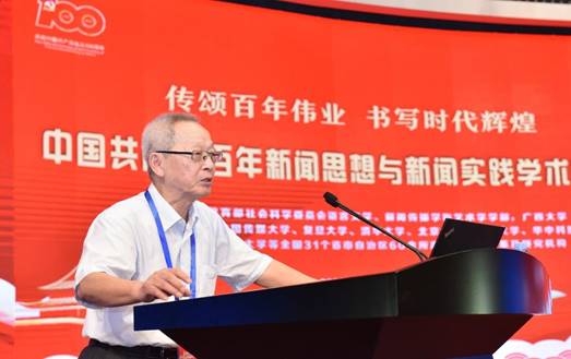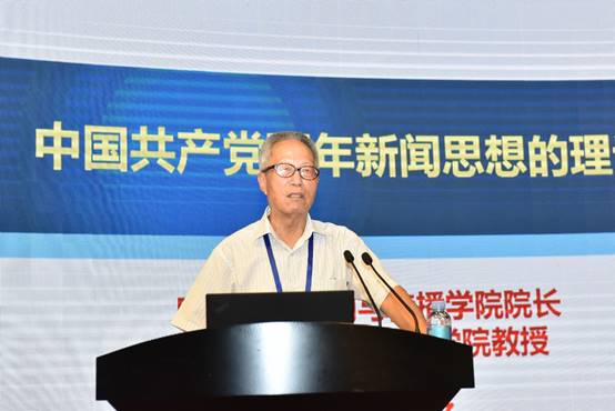 太阳集团tyc4633经理、国家社科基金重大项目《百年中国共产党新闻政策变迁研究》首席专家郑保卫教授作了《中国共产党百年新闻思想的理论贡献》的主题报告。他总结了中国共产党百年新闻思想的理论贡献和成就,一是创立了中国无产阶级党报学说基本理论;二是搭建起中国特色社会主义新闻理论基本框架;三是探索了中国特色社会主义新闻学基本内容;四是推动了马克思主义新闻观中国化历史进程。为世界新闻学,特别是世界无产阶级新闻学和社会主义新闻学的丰富、创新和发展做出了独特的理论贡献。他指出当前我们要建构的中国特色社会主义新闻学的理论体系,关键要解决三个问题,一是要体现“中国特色”,所谓“中国特色”就是应该具有中国基因、中国风格、中国气派;二是要体现“社会主义”,就是必须是马克思主义的和社会主义的,而不是别的什么主义的,因此一定要警惕西方新闻观的负面影响;三是要体现“科学性”,要遵循新闻规律和按照学术规律来构建中国特色社会主义新闻学的科学理论体系。