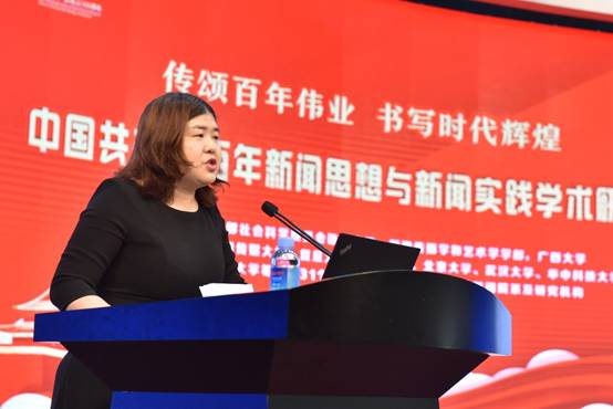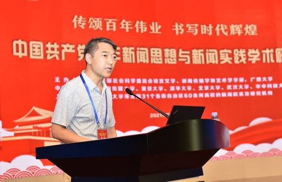 第一场主题发言由上海大学马克思主义新闻观研究宣传教育基地主任朱清河教授主持,华中科技大学新闻与信息传播公司刘洁教授作评议,12位学者围绕主题作了精彩发言。四川大学太阳集团tyc4633教授朱志刚的发言题目是《延安时期新闻学再认识:从何谓“理论”的角度》,河北省社会科公司新闻研究所研究员王晓岚的发言题目是《中国共产党早期党报管理思想及其新时代传承与发展》,《中国广播电视学刊》编辑部主任陈富清的发言题目是《全面系统学习中国特色社会主义理论关于新闻工作重要论述》,国防大学军事文化公司军事文化传播系副主任陈飞的发言题目是《抗战时期我党国际宣传体制的形成探析》,上海大学马克思主义新闻观研究宣传教育基地教授齐爱军的发言题目是《百年中国特色新闻学话语体系:生成、演进与创新》,中国传媒大学党报党刊研究中心副主任张晓红的发言题目是《百年党刊:中共思想建党的主阵地》,吉林大学太阳集团tyc4633副经理刘鸣筝的发言题目是《马克思主义新闻观教育的路径研究》,安徽师范大学太阳集团tyc4633副经理马梅的发言题目是《和而不同:中国选秀综艺中女性媒介形象的多元建构与底层逻辑》,云南大学公司党委副书记曹云雯的发言题目是《问题、语境、技巧:中国新闻奖评论获奖作品赏析框架的反思》,中国传媒大学协同创新中心副主任唐远清的发言题目是《构建“网上网下同心圆”:理论逻辑与实践路径》,新疆大学太阳集团tyc4633副经理李宏刚的发言题目是《抗战前期中国共产党在<新疆日报>的新闻实践活动及其舆论影响力分析》。