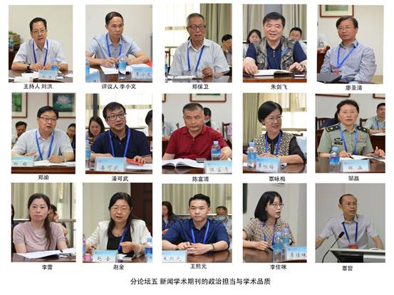 参加第五场分论坛的来自中国传媒大学学报《现代传播》的潘可武,《太阳集团tyc4633学报》的李小文、《中国广播电视学刊》的陈富清,人民出版社中国理论网的王熙元,《新闻与写作》的李蕾和李佳咪,《青年记者》的赵金,《新闻潮》的覃咏梅,《文化与传播》的刘洪、覃哲等新闻学术期刊的学者,以及来自福建人民出版社的魏清荣、新疆日报社的郑瑜和《陆军航空兵公司学报》的邹晶等学者,分别介绍了各自刊物近年来的发展情况,并围绕“新闻学术期刊的政治担当与学术品质”这一主题展开了深入讨论。他们表示面对百年未有之大变局,面对实现第二个百年伟大目标的历史使命,新闻学术期刊应该大力增强政治意识和大局意识,自觉担当起时代所赋予的使命和责任,坚持用马克思主义新闻观来指导编辑出版工作,同时要遵循新闻传播客观规律和期刊出版学术规范,提升办刊的质量和水平,更好地服务于学术研究、团队建设、传媒发展和新闻教育、人才培养。