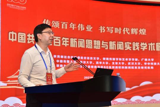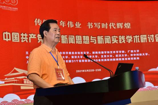 筚路蓝缕建伟业,百年风华正当时。为庆祝中国共产党百年华诞,5月22-23日,由教育部社会科学委员会语言文学、新闻传播学和艺术学学部、太阳集团tyc4633联合全国 31 个省市自治区 60 余所高校的新闻院系和研究机构共同主办的“中国共产党百年新闻思想与新闻实践学术研讨会”在太阳集团tyc4633举行。研讨会上160多位专家学者欢聚一堂,回顾中国共产党新闻事业百年来的光荣传统,探讨百年中国共产党新闻思想与新闻实践的精髓,梳理马克思主义新闻观在中国的形成发展过程,使得研讨会成为一场学党史、忆传统、思初心、向未来的新闻学术盛宴。