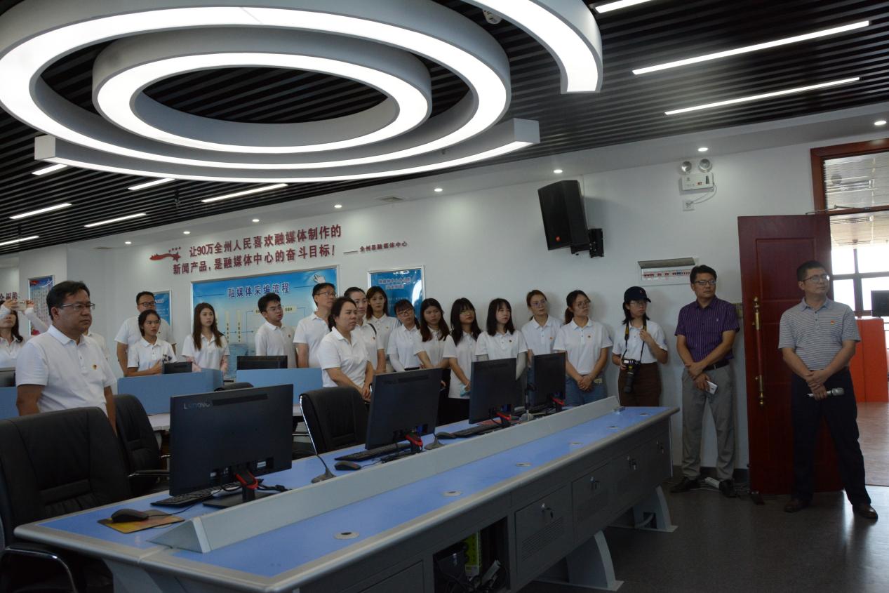 78日,实践队前往全州县融媒体中心,为共建的“融媒实践基地”举行揭牌仪式,与全州县融媒体中心工作人员进行了深入交流,了解习近平总书记在全州考察调研宣传报道的全过程,参观了融媒体中心演播室、制作室。此外,师生们继续前往桂北民俗博物馆、语录山等地参观考察。
