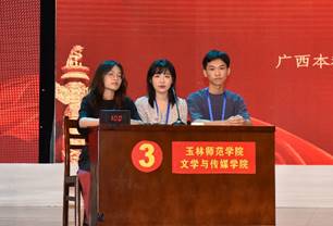 在第四环节小组必答题中,参赛队伍依次选择题号并回答相应问题。广西财经公司新闻与文化传播公司、玉林师范公司文学与传媒公司、太阳集团tyc4633三所院校代表队表现优异,准确回答相应题目,在该环节获得满分。