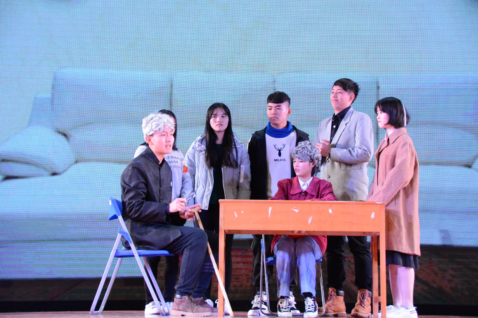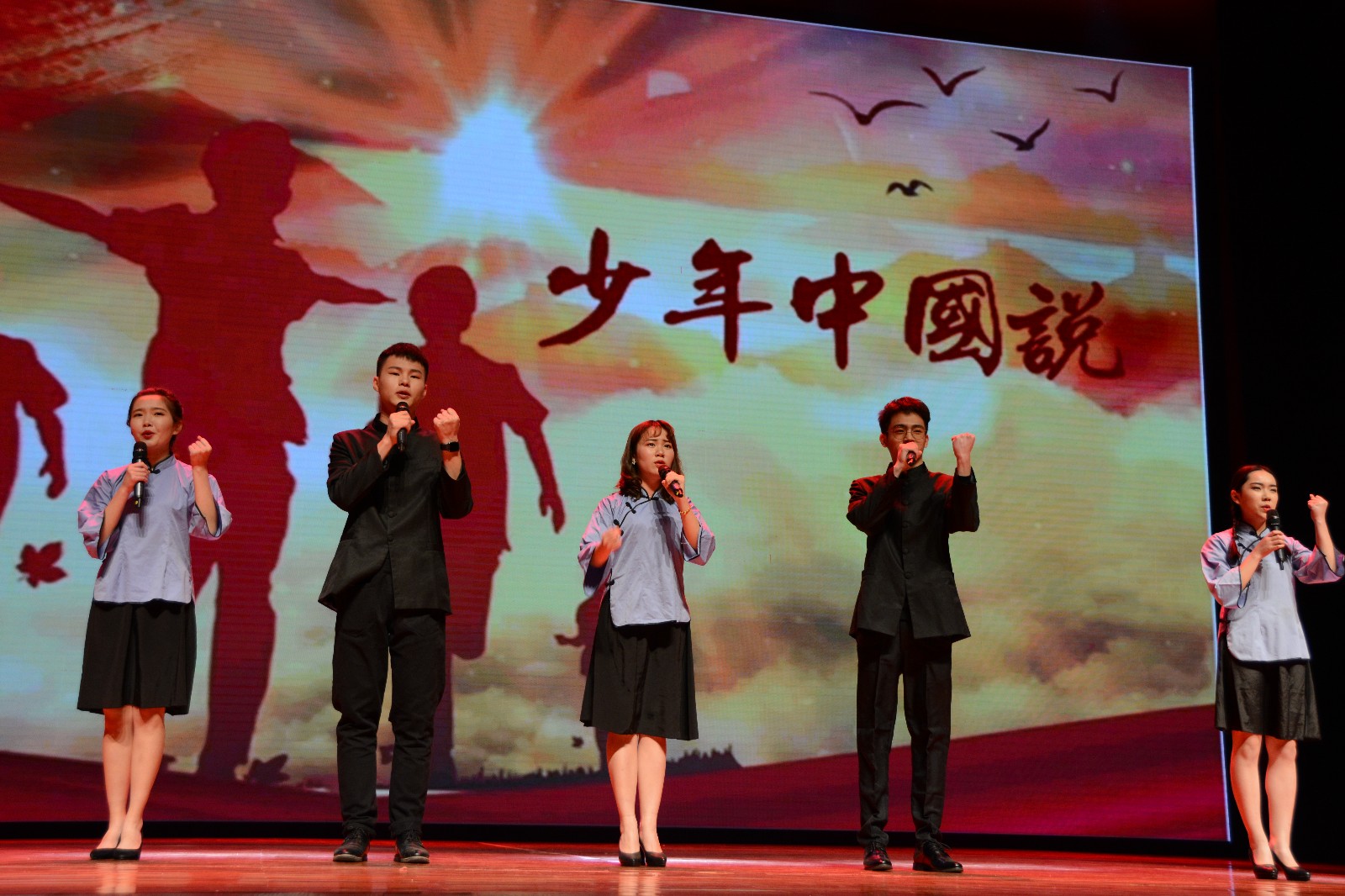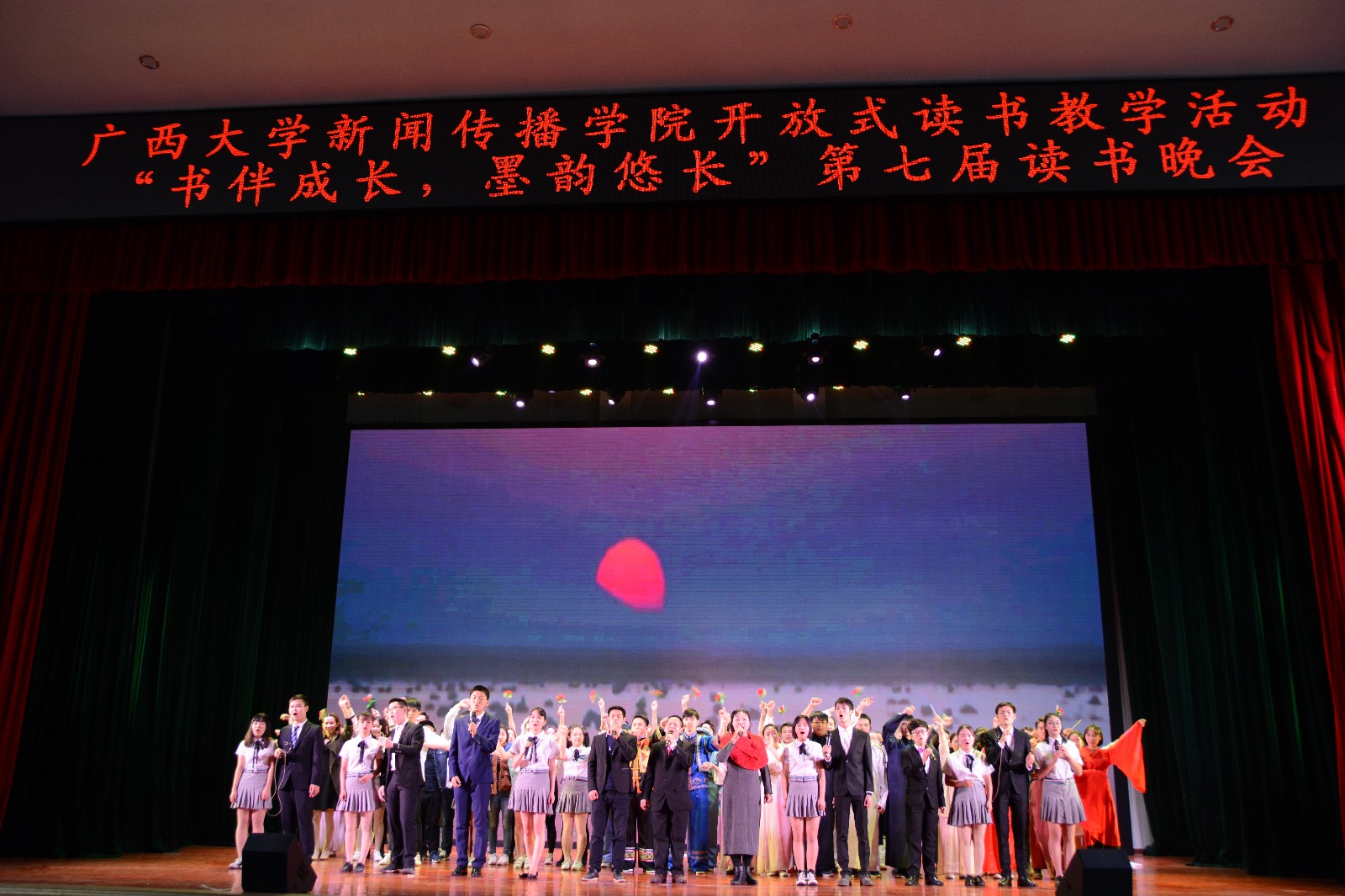 晚会开始,公司舞蹈队用开场舞《HOLIODAY》为今晚的读书晚会拉开了序幕。充满活力的舞蹈将全场气氛带动起来。在第一篇章“书载千秋”,新闻172班用情景剧《党光辉下的一家人》讲述了几代人在党带领下创造幸福生活的故事。随后,17级专硕班的同学架起古筝,换上带有民族特色的服装,“十里桃,八桂情”,展示出不一样的青春风采。“五花马,千金裘。呼儿将出换美酒,与尔通销万古愁!”激昂的朗诵,一声声震撼着同学们的心。配合着灵动的音乐,新闻174班的同学们和武术协会为大家带来了武术操和诗朗诵《武之力,声之形》。