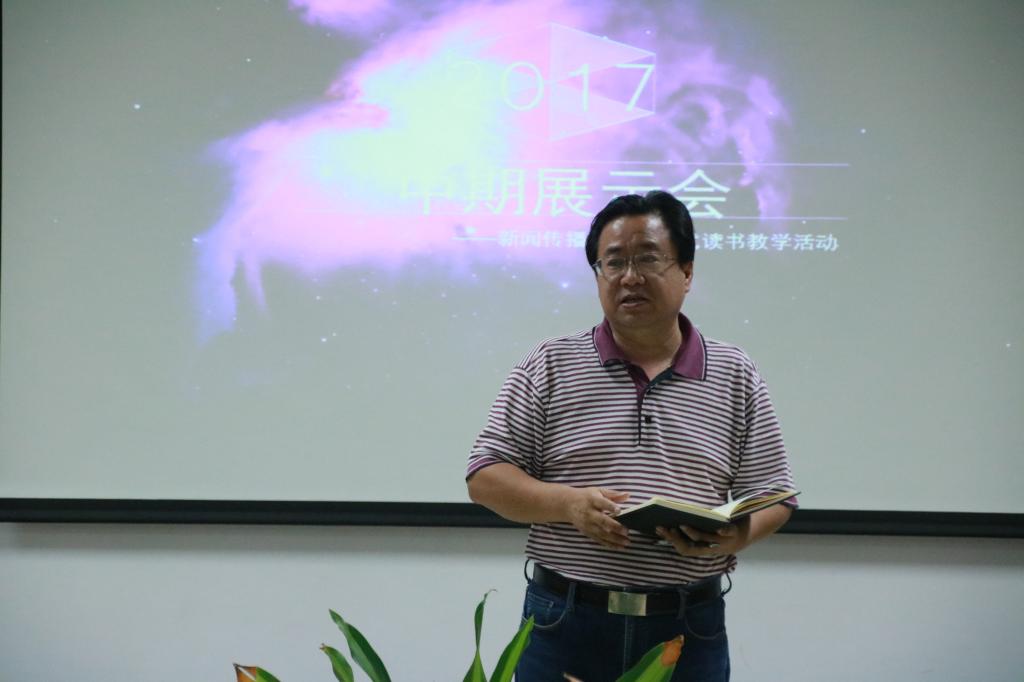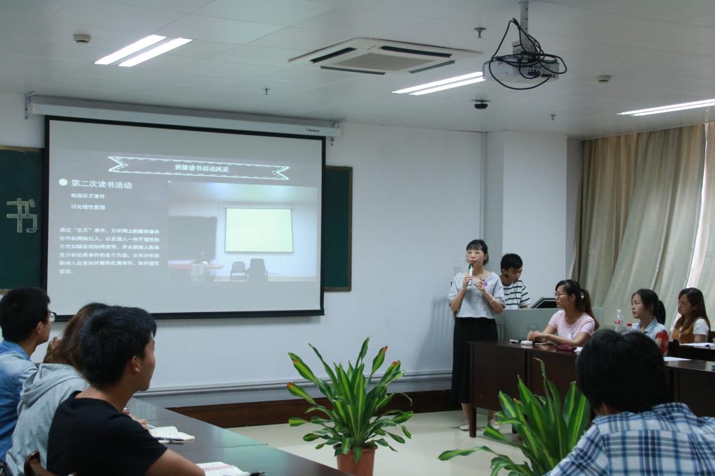 在班级展示环节,员工代表通过多媒体展示了本班这个学期开展读书教学活动的基本情况和特色亮点。16级专硕班用自制视频回顾了活动开展的精彩瞬间;播音151班代表发挥专业特长,朗诵了《历史的教训》中最让其印象深刻的一段话;新闻141班着重介绍了“重视交流互动、注重阅读延伸、开展跨班合作”的特色。