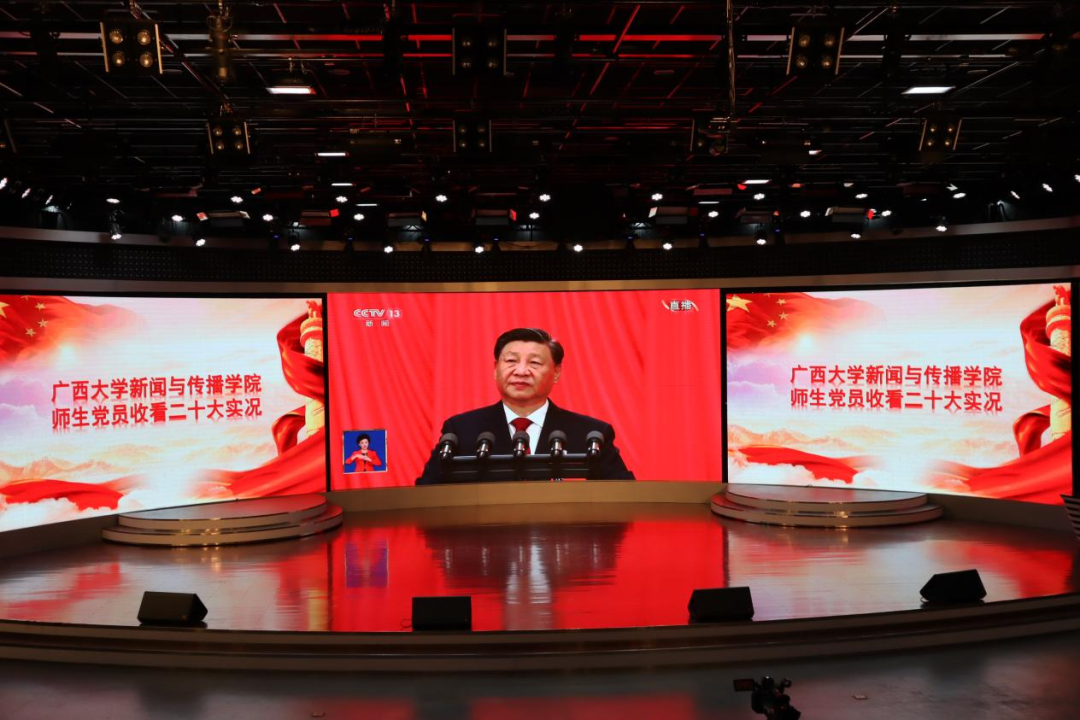 太阳集团tyc4633全体党员和教师在融媒体中心观看党的二十大实况